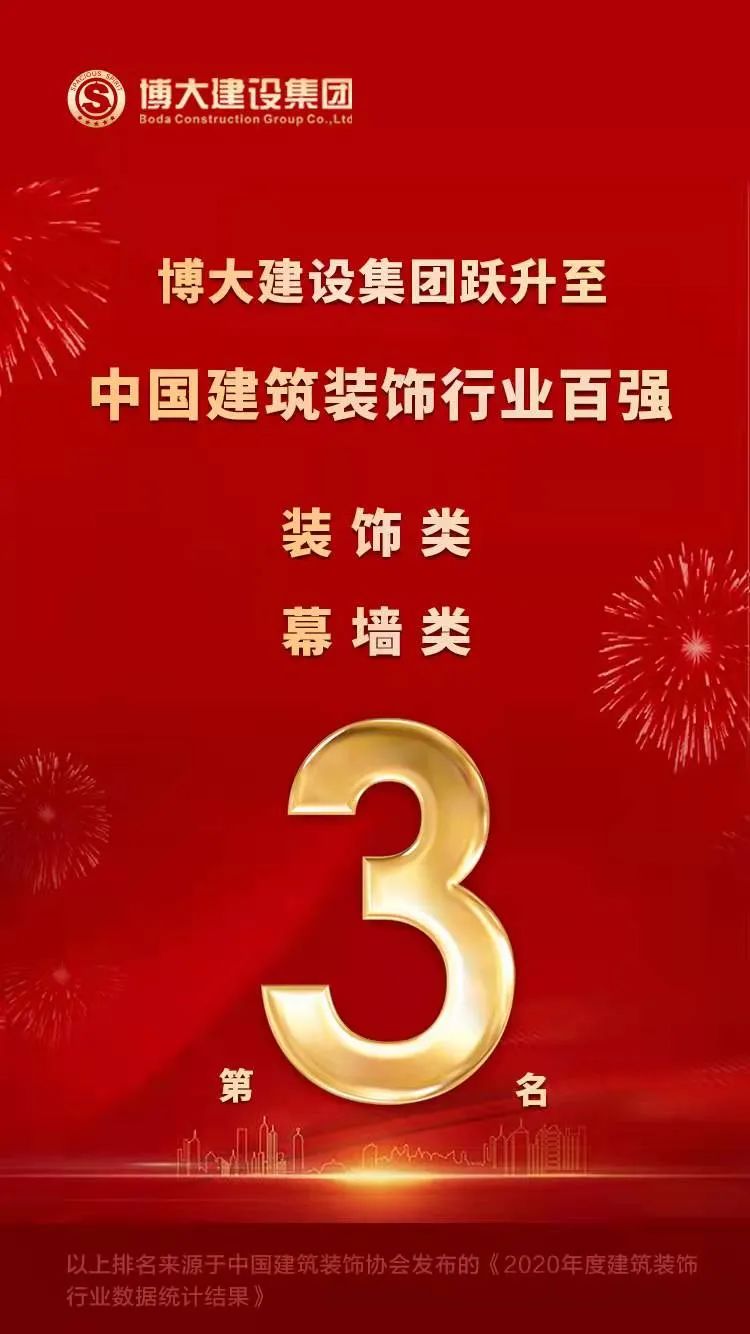 全國第三!博大建設集團全國裝飾行業(yè)百強排名再次躍升!
