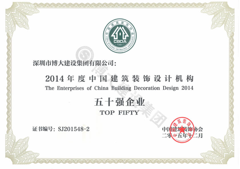 2014年度中國(guó)建筑裝飾設(shè)計(jì)機(jī)構(gòu)50強(qiáng)企業(yè)