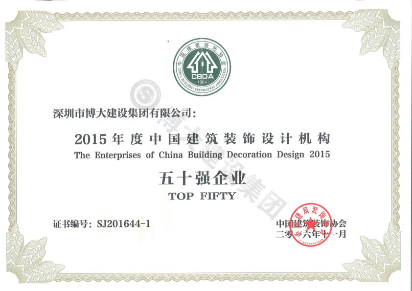 2015年度中國(guó)建筑裝飾設(shè)計(jì)機(jī)構(gòu)50強(qiáng)企業(yè)