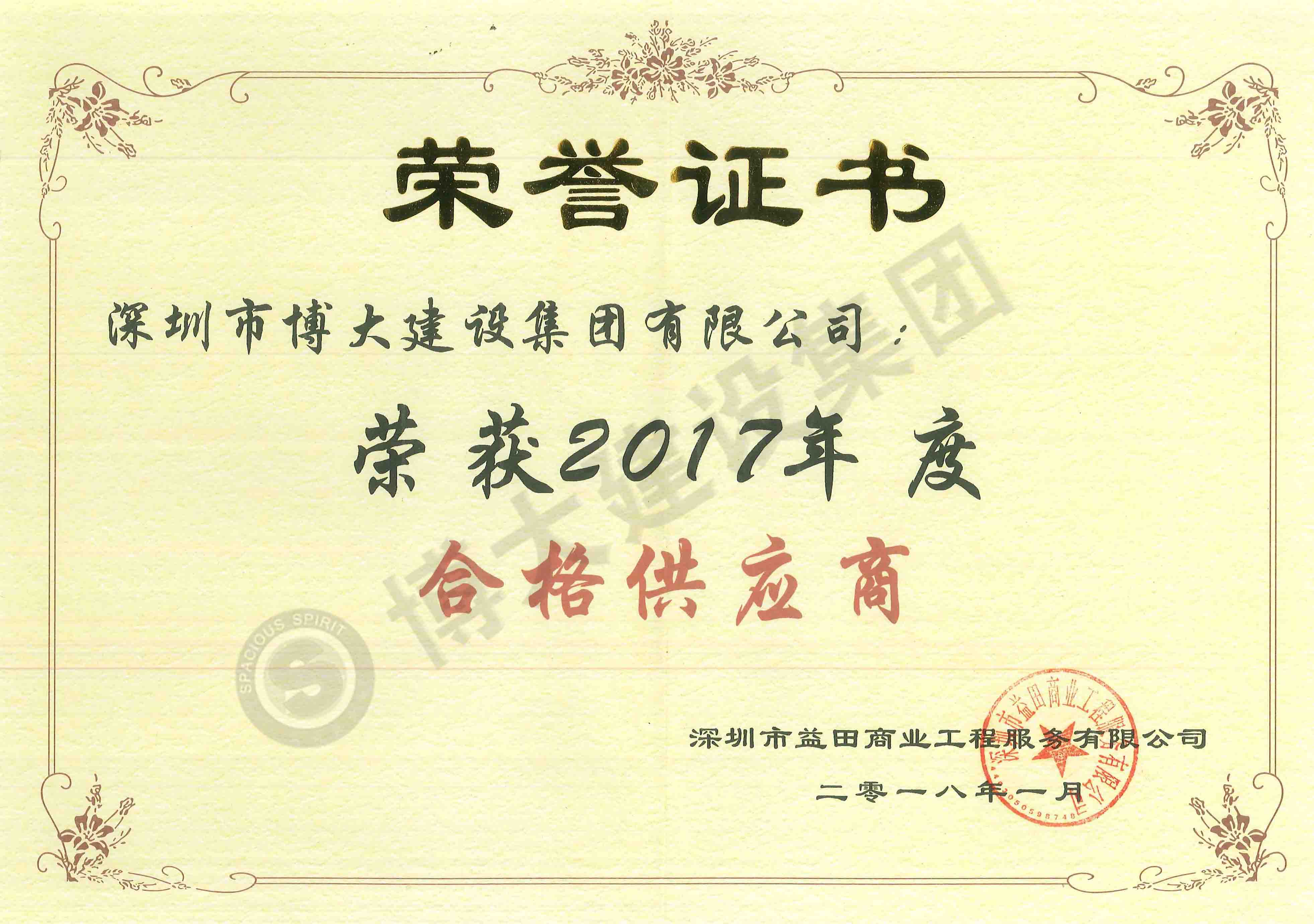 榮獲益田商業(yè)2017年度合格供應(yīng)商