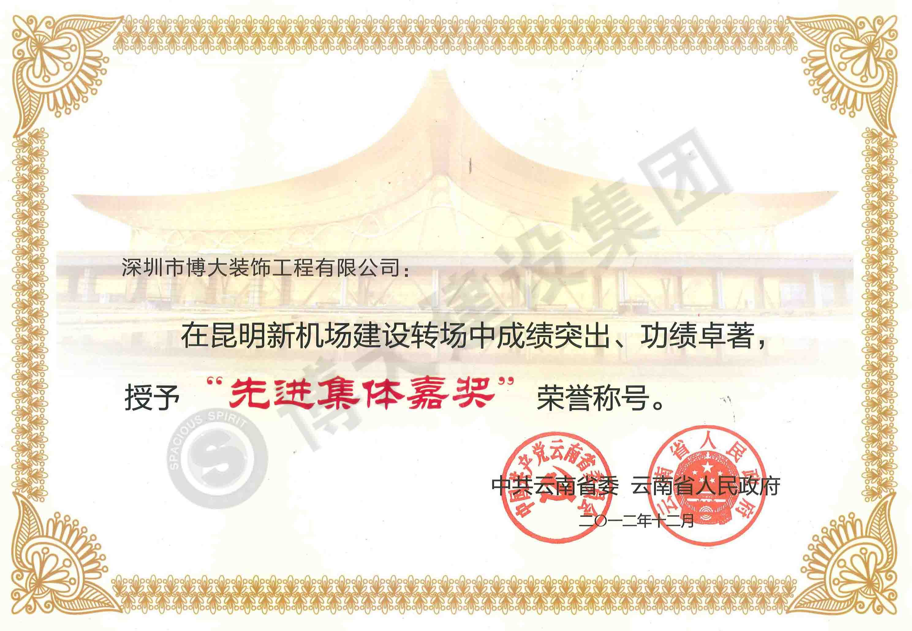 榮獲云南省委、省政府頒發(fā)的先進(jìn)集體嘉獎(jiǎng)