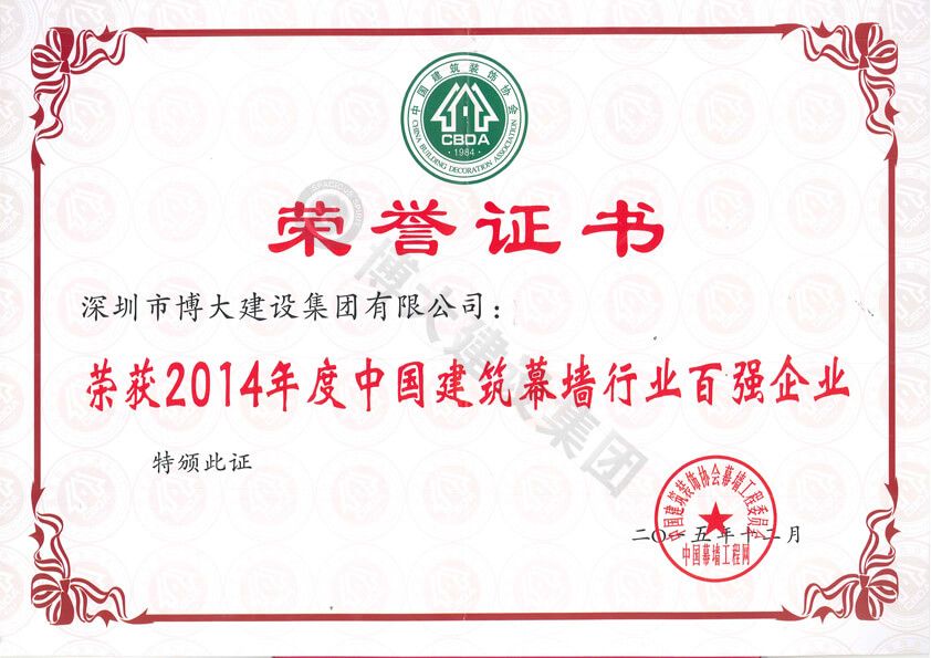 2014年度中國建筑幕墻行業(yè)百強(qiáng)企業(yè)