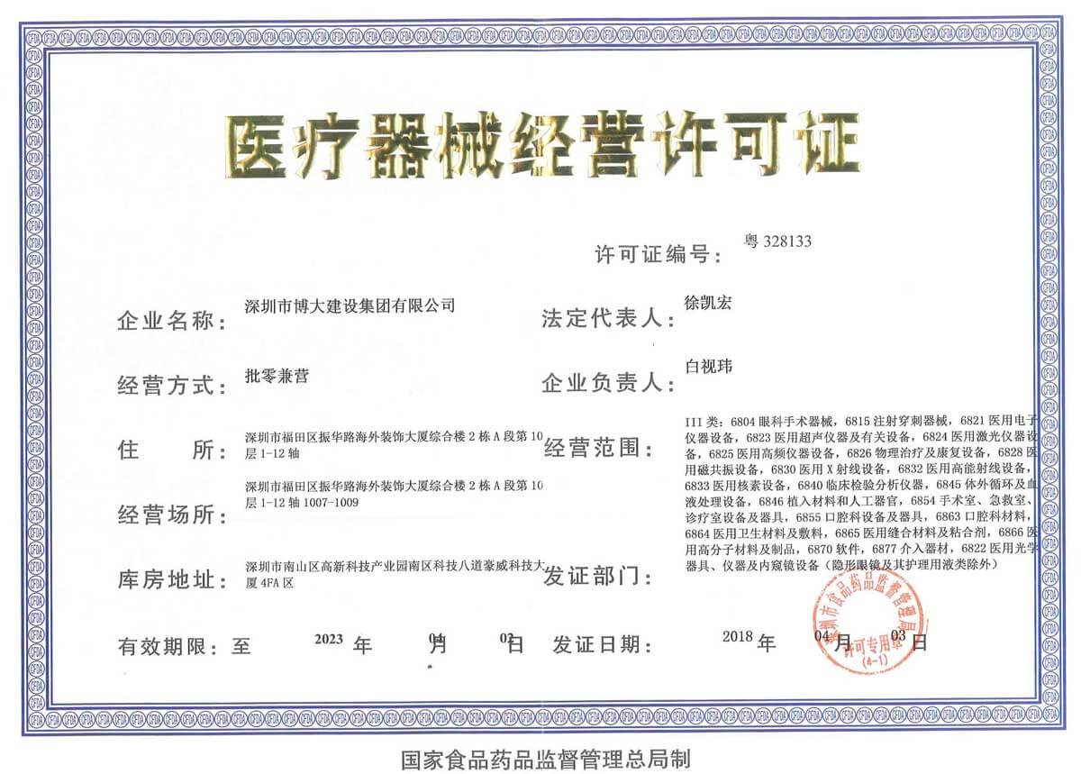 同期,博大還得到國家食品藥品監督管理總局頒發的醫療器械經營許可證,在醫院、醫療相關領域服務功能更加完善,給客戶帶來了更多的選擇空間。